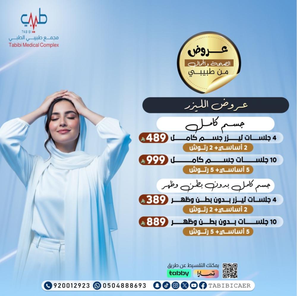 4 جلسات ليزر جسم كامل ( 2 اساسية + 2 رتوش )